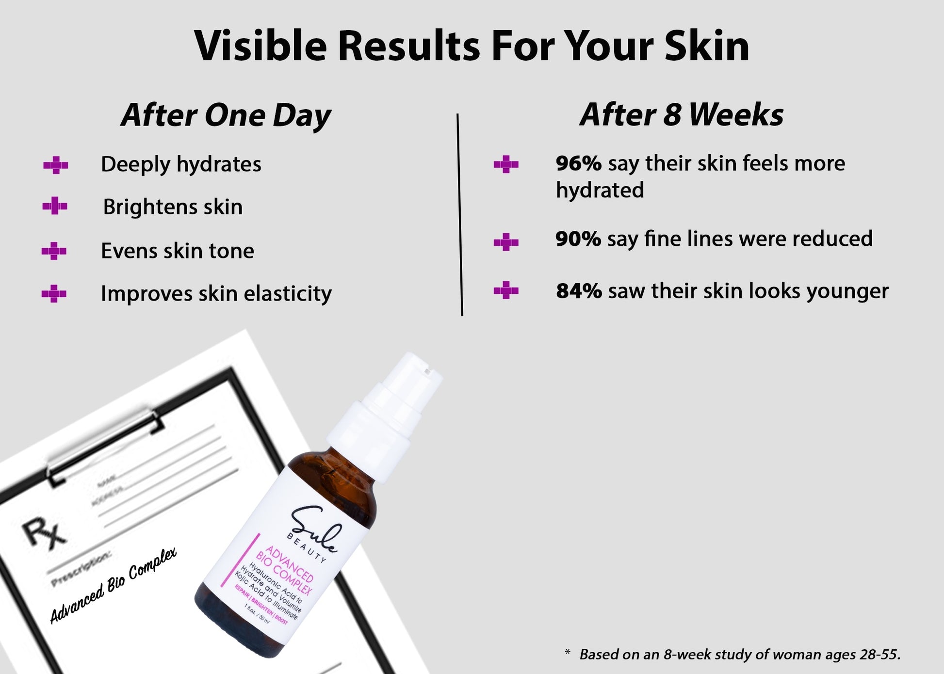 Sule Beauty Advanced Bio Complex For Face And Neck – Hyaluronic and Kojic Acid Brightening Serum – Works To Fade Discoloration and Even Out Skin Tone – Uses Ingredients Found In Nature - Botanical Extracts And Scientifically Advanced Formula – Penetrate Deeply to Hydrate, Brighten, and Rejuvenate Skin – 1 Fl Oz.